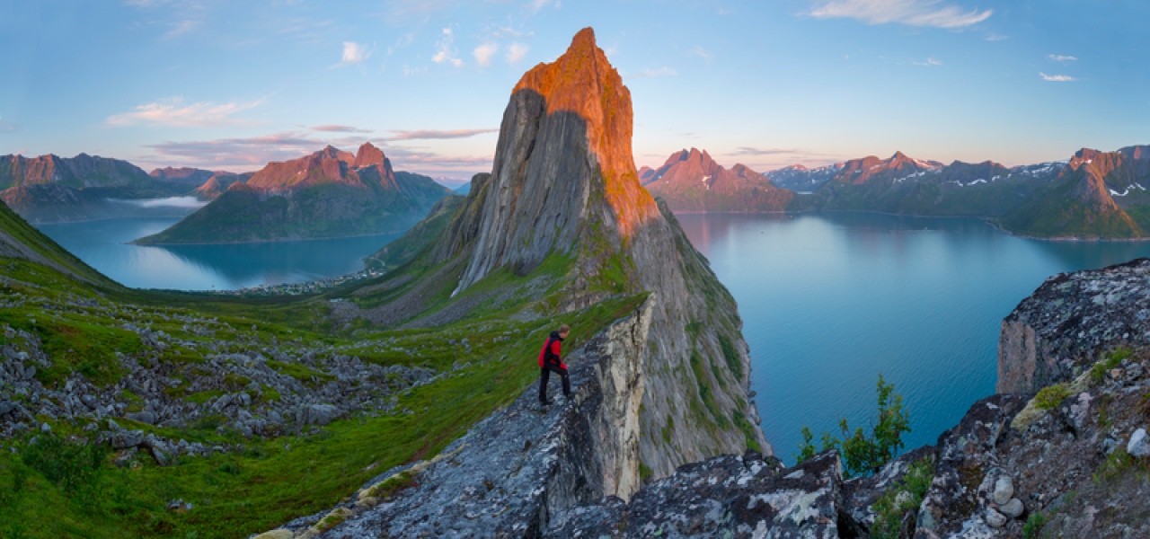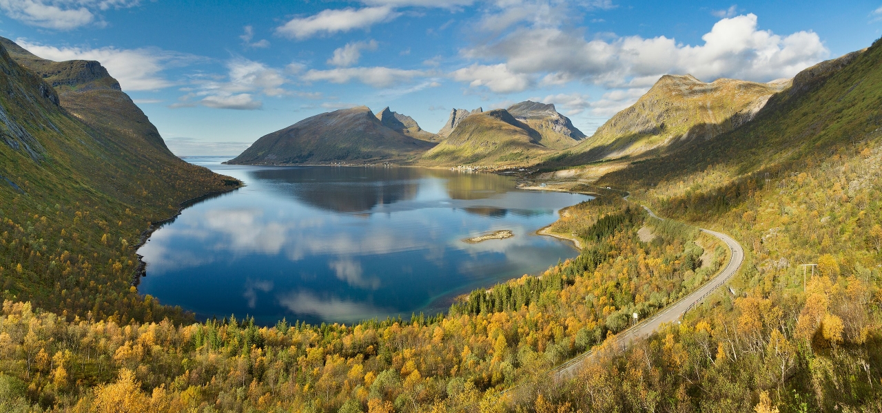 Cykelturen går runt ön Senja som ligger strax norr om Lofoten. Naturen är dramatisk med branta berg och vackra sandstränder. Cyklingen går på slingrande småvägar utmed havet som har väldigt lite trafik. Midnattssolen gör att man kan välja att cykla på kvällar och nätter. Med korta dagsturer finns tid för lätta men spektakulära vandringar till bergstoppar som stupar ner mot havet. Det är möjligt att kombinera med valsafari i Andenes för att se späckhuggare eller ta en kajaktur utanför Senja. Det är mycket färre turister än på Lofoten men det finns ändå tillräckligt med boendealternativ. Här finns en youtubefilm om turen (spola fram till 9:30). En detaljerad plan för turen finns nedan.