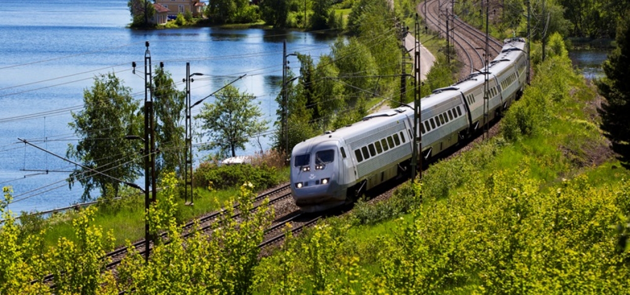 Tågresan går med nattåg från Göteborg eller Stockholm till Narvik. Tågresan tar ungefär ett dygn och sedan är det buss ett par timmar från Narvik. Då resan går med nattåg så kan man göra den här resan på bara 6 dygn, och då med cykling 5 av dagarna.